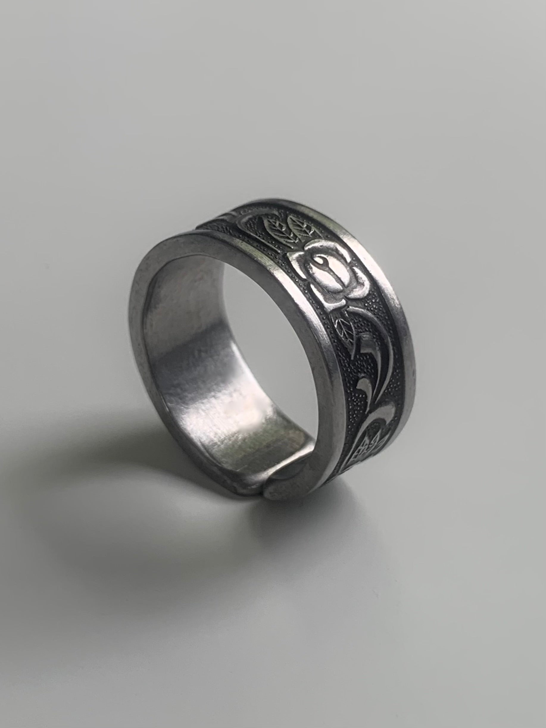 This is a home made ring made from a recycled spoon. You are able to select a custom size so I can make a size perfect for you. Please message me if you have any questions or queries.